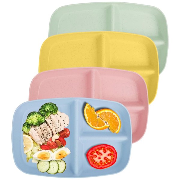 Taasmoog 4Pcs Dinner Plate Set, Divided Dinner Plates Sets, Unbreakable Diet Plates Portion Control Divided Plates, Reusable Dishes Set for Adult Children Kids