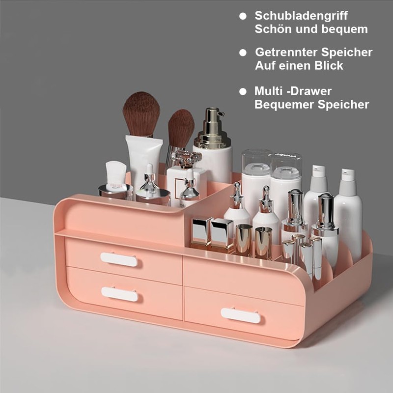Make Up Cosmetic Organiser with Drawers, Multifunctional Dressing Table Makeup Organiser Storage Cosmetic Box for Bedroom, Bathroom (Pink)