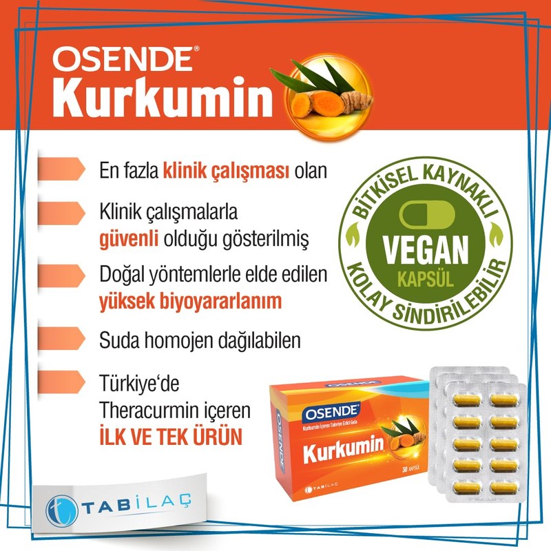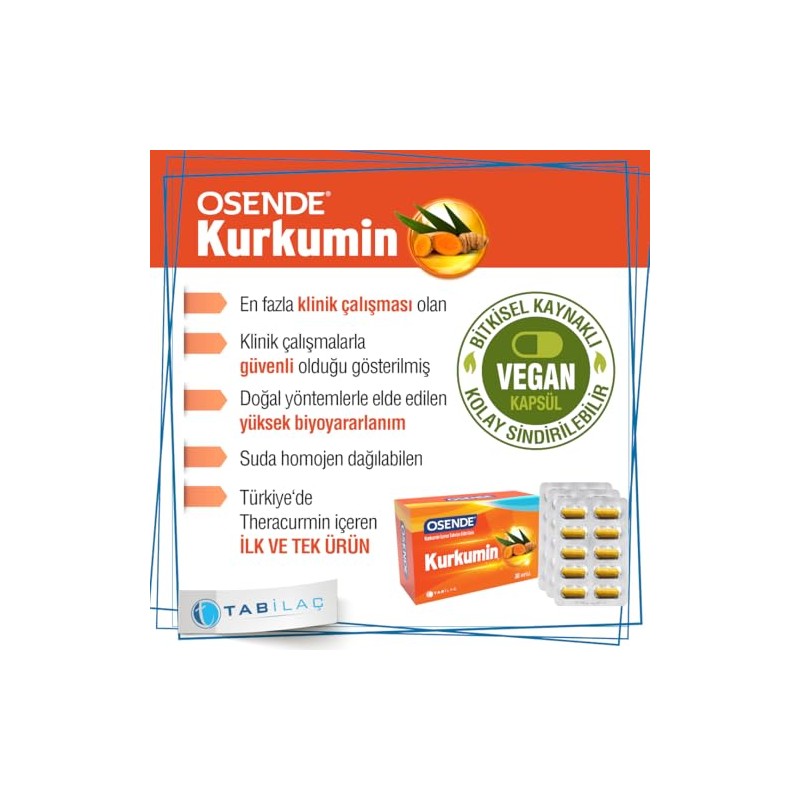 Tab İlaç Osende Curcumin 30 Kapsül AROMASIZ Renkli