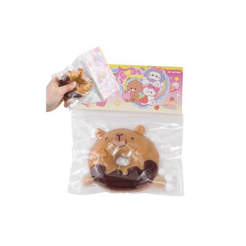 Taba Squishy Toys, Cute Kawaii Cat Paw Squeeze Toys ,Sticky Squishy Fidget Toys Silicone Squeeze Toy for Stress Relief,Cute Soft Sticky Toys,Best Valentines Gift for Anniversary (Capybara Donut)