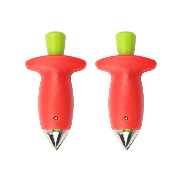 • MULTIFUNCTIONAL HULL REMOVER: You will receive 2 high quality corers measuring approximately 9 x 5 cm to help you perfectly remove the cores and calyxes of strawberries and other soft fruits, a must-have and safe fruit processing tool for your kitchen.