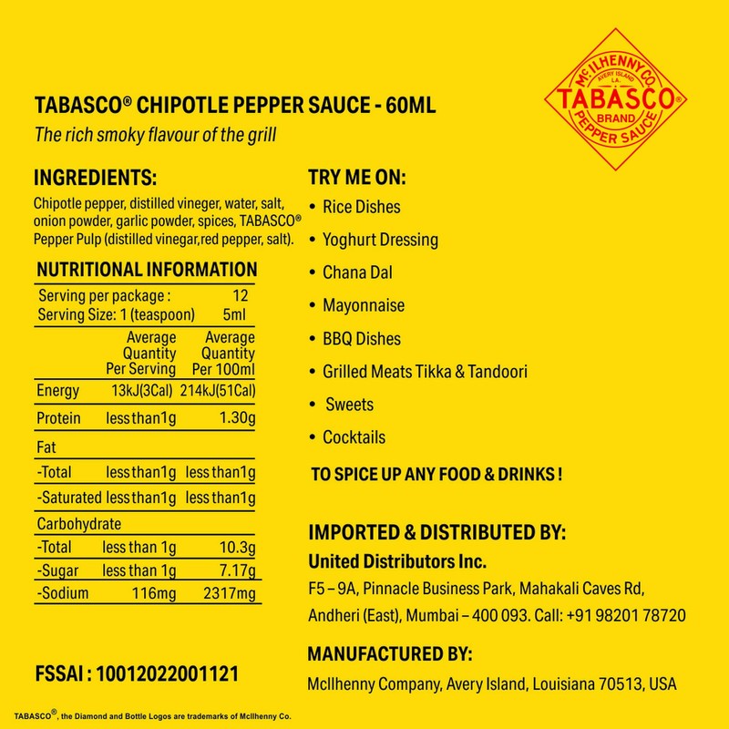 Tabasco Chipotle Sauce Smoked Red Jalapenos (60ml)