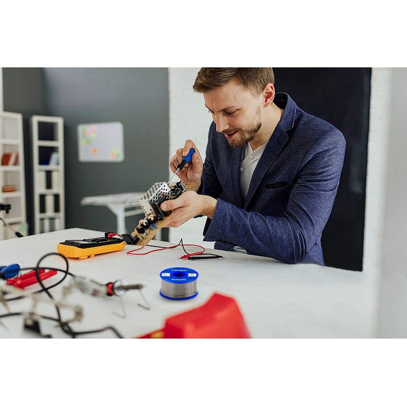 Tabiger lead-free solder wire contains a rosin core with good electrical and thermal conductivity and is RoHS compliant. The use of a solder wire coil design improves welding efficiency and leads to low residue. It is perfect for electrical soldering and wire connections and can be used for headphones, electric guitars, XLR microphones, laptops, circuit boards, etc.