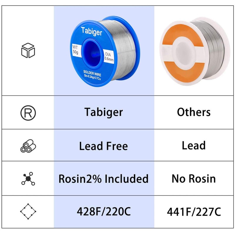 - Lead-free solder:Tabiger solder wire is made of Sn 97%, Rosin 2%, Ag 0.3%, Cu 0.7%, it is lead free, good for your health and the environment.