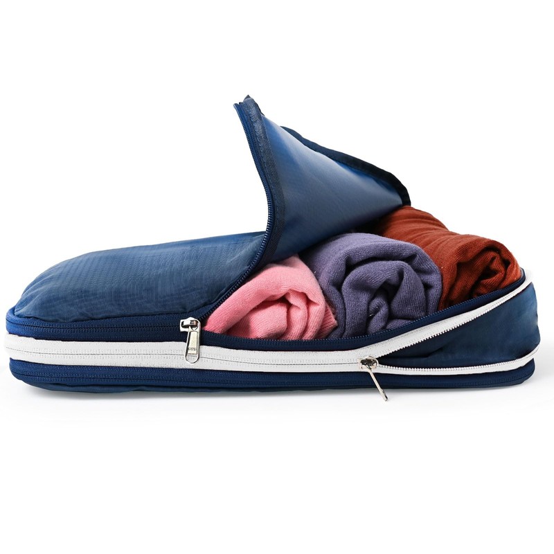 - (Easy to compress with zipper) Keep bulky luggage organized while traveling. TABIGO!! compression pouch can easily compress folded clothing. Simply zip up the travel pouch to keep your suitcase neat and easy to pack. Furthermore, the two side pockets allow you to separate your clothes before and after wearing for hygienic and efficient use. A convenient item that can be used to store compact and sanitary clothing at the same time