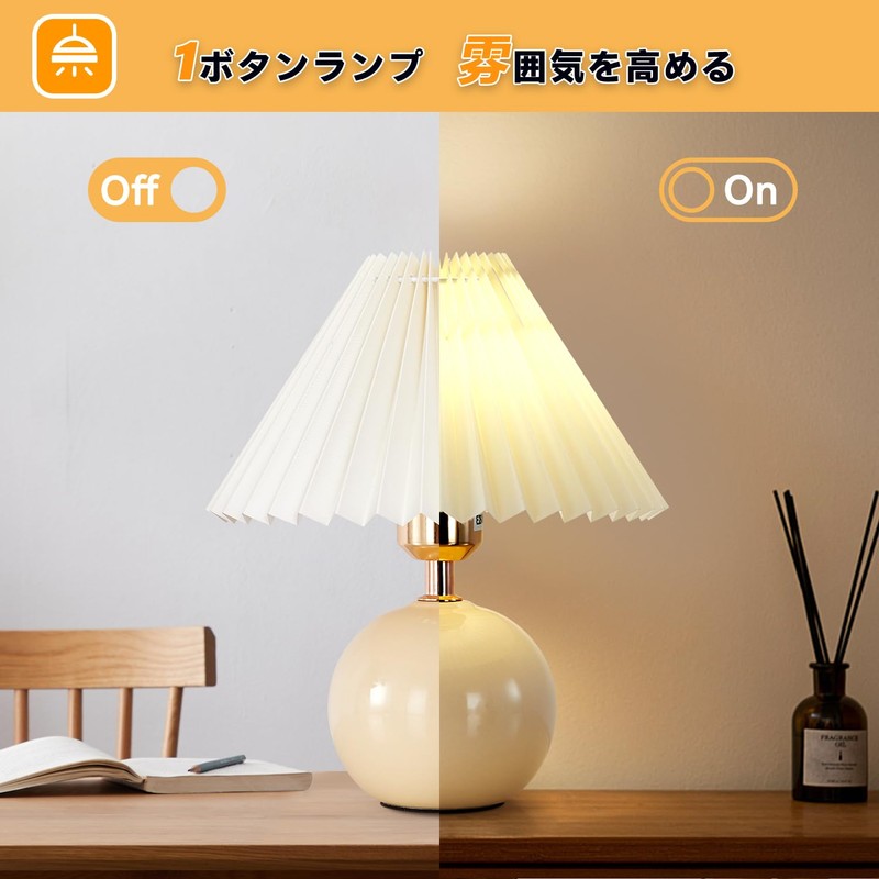 - 【Ceramic Table Light】This table lamp consists of a ceramic base and pleated lamp shade. The pleated fabric sades light up a soft light and the ceramic base adds a touch of elegance to your room. Useful as interior decoration even when you can't turn on the light. Perfect for living rooms where warm light diffuses at night