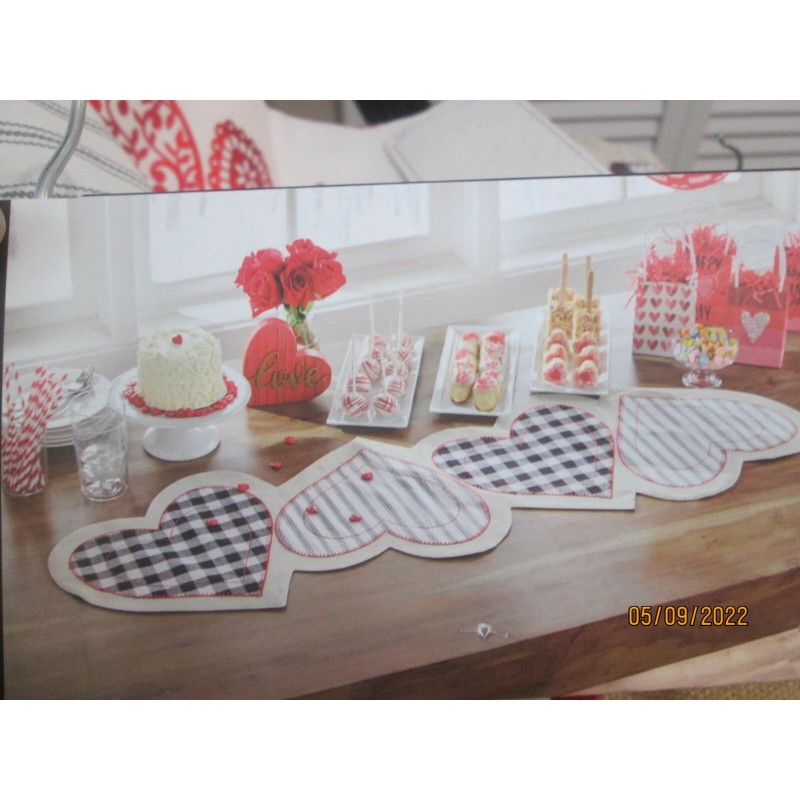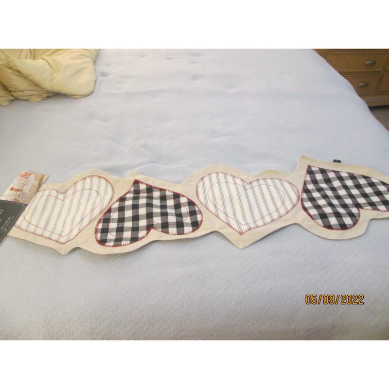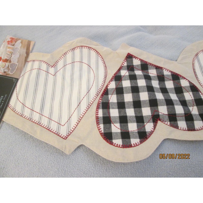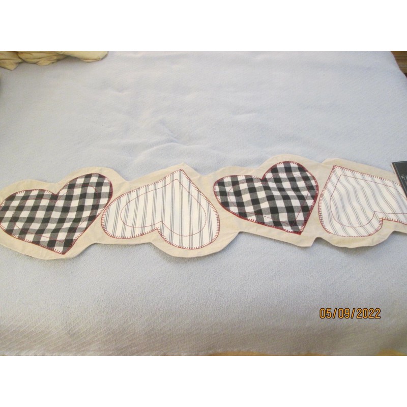 Table Runner Centerpiece Valentine Day Gingham Heart Shaped Appliqued 15" X 48"