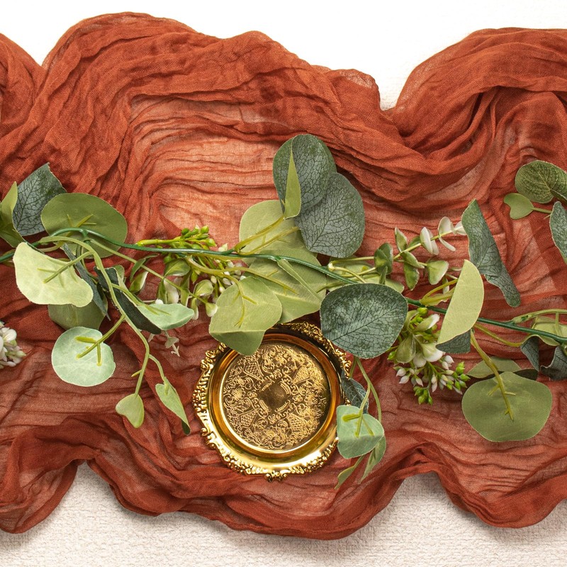 Table Runner Cheesecloth 10 FT Boho Rustic Table Runner Gauze for Wedding Easter Spring Decor Cheese Cloth for Baby Shower Birthday Home Decor (Rusty Red, 5 Pack)
