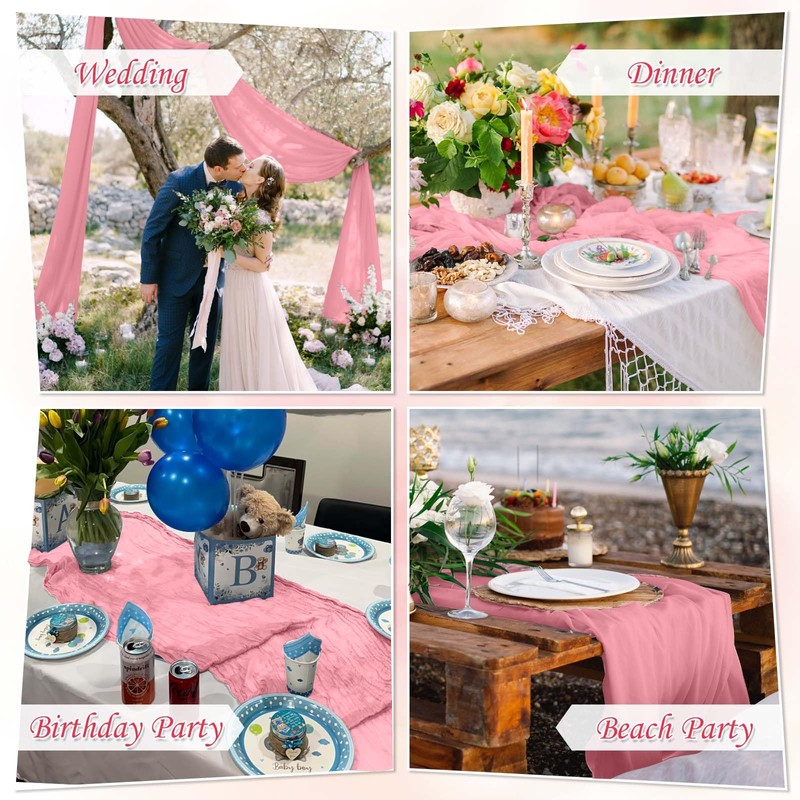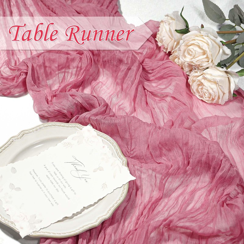 Table Runner Cheesecloth 10 FT Boho Rustic Table Runner Gauze Table Runner for Wedding Spring Decor Cheese Cloth Table Runner for Baby Shower Birthday Home Decor (Rosy Pink, 5 Pack)