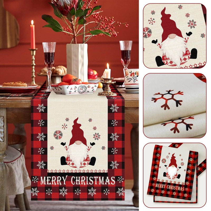 - HIGH QUALITY AND DURABLE CRAFTSMANSHIP This Christmas table runner gnome made of high quality linen with meticulous stitching provides both softness and durability. It reliably protects your table from hot pans, scratches and spills while maintaining its vibrant and elegant appearance throughout the Christmas season.
