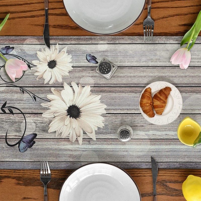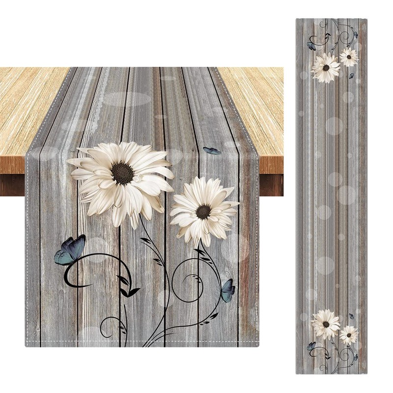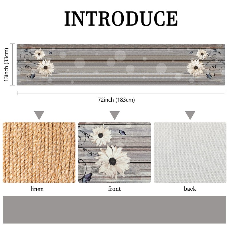- Vintage wooden design: Our autumn table runners are designed with a unique blue-brown pattern made of wooden boards (lilies and daisies). It will help you quickly replace your table with a new vintage look, and using a tablecloth is also a great way to protect your table from oil and water, spills and occasional scratches.