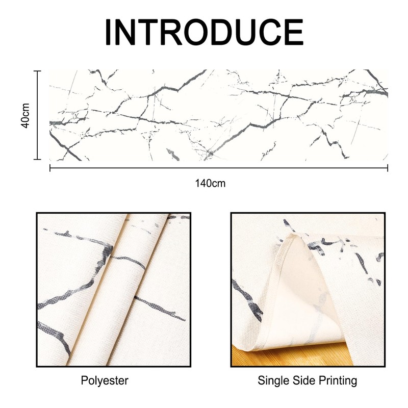 - Material: Modern marble texture table runner. The table runner is made of high quality linen, soft and durable and can protect the table top from stains at high temperatures. Elegant and refined routing, perfect for everyday wear and special occasions.