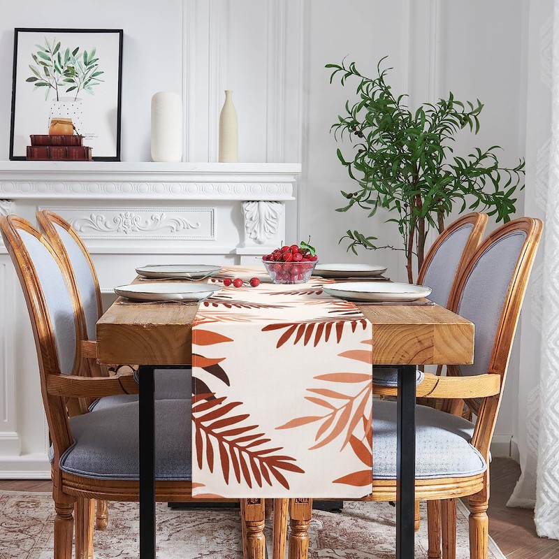 - Exquisite flower motif: this polyester table runner, which contains artistic, lifelike representations of leaves, gives your dining decor the finishing touch. The lots of colour and character add to your home.