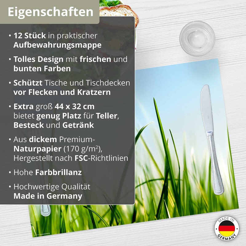 - The Placemats Are Made From Very High Quality, Thick Paper for a great colour brilliance. Environmentally friendly and 100% recyclable.