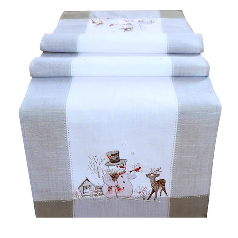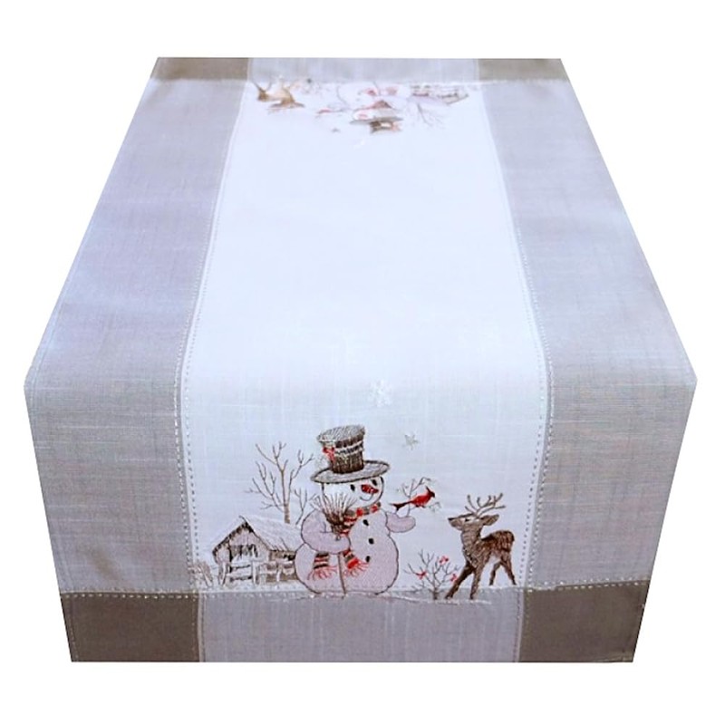 - Table cover – light grey/colourful embroidery "snowman"