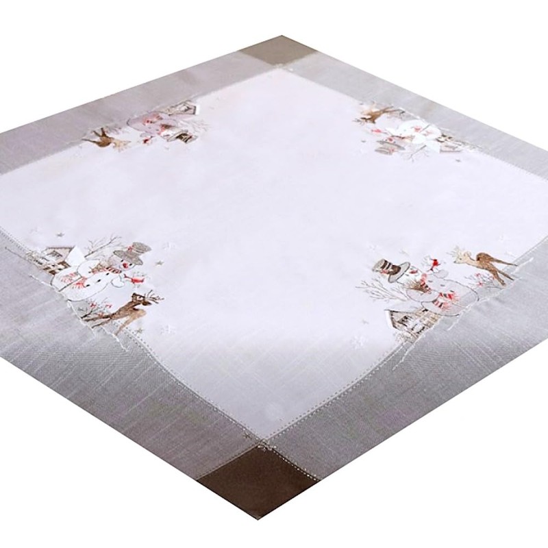 Tablecloth 85 x 85 cm Embroidery "Snowman" Grey White Silver Christmas Tablecloth Christmas Decoration Table Decoration