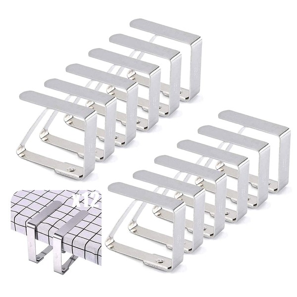 Tablecloth Clips, MEIRRAI Table Clamp Set of 12, Large Tablecloth Clips, Table Cloth Clips, Stainless Steel Tablecloth Holder, Tablecloth Holder for Indoor and Outdoor Use, 8 x 7 cm for Thickness 3-5