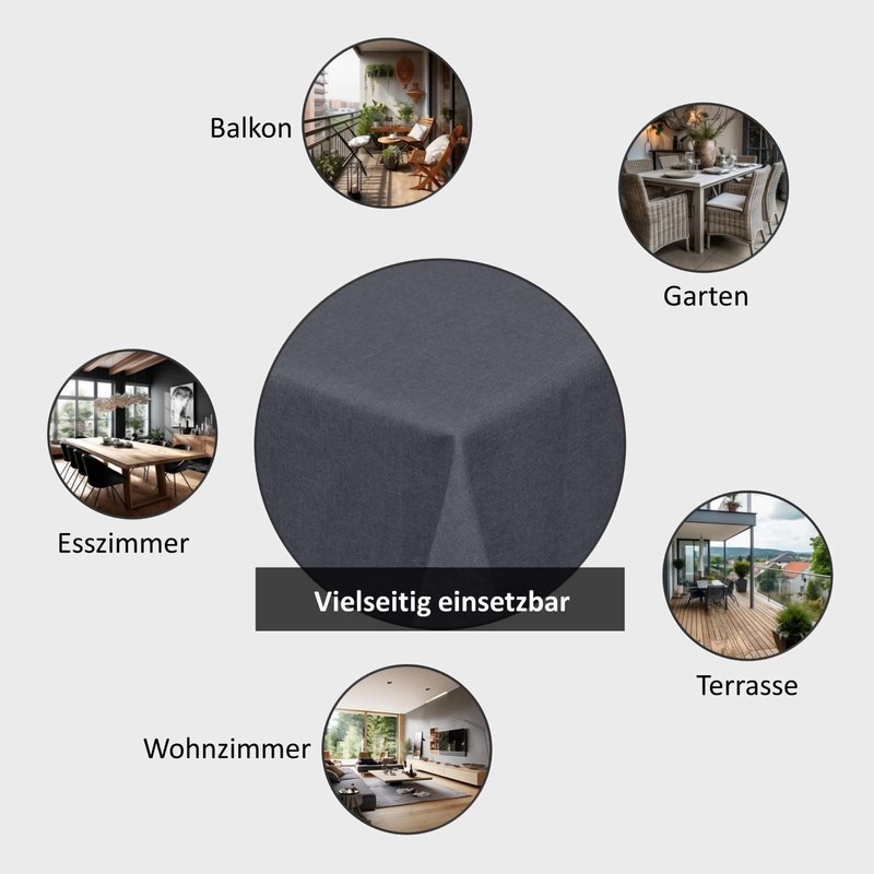 Tablecloth with stain protection, linen look, washable. Versatile, whether for garden, living room or kitchen. This tablecloth will delight you due to its ease of care. The tablecloth is very robust and high-quality workmanship.