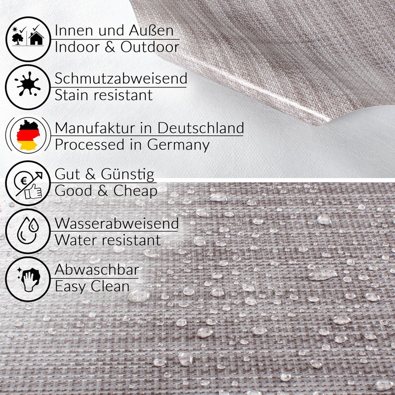 - Water-repellent, lotus effect, dirt-repellent, robust, easy to clean, non-slip, washable with a damp cloth