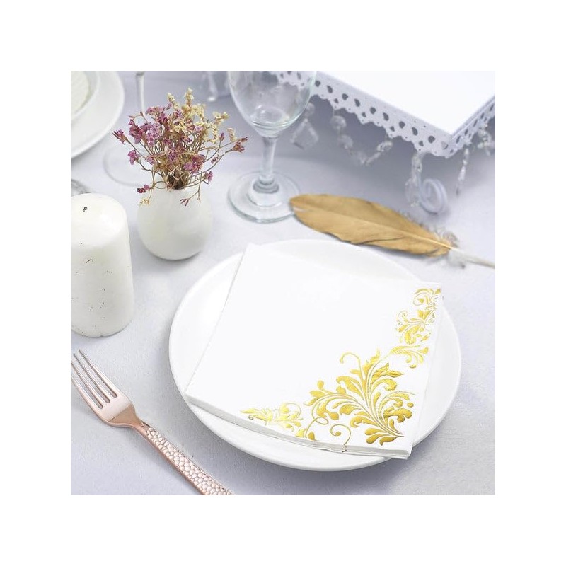 TABLECLOTHSFACTORY 20 Pack 3 Ply Metallic Gold Intricate Design Paper Napkins Wedding Cocktail Napkins Dinner Napkins