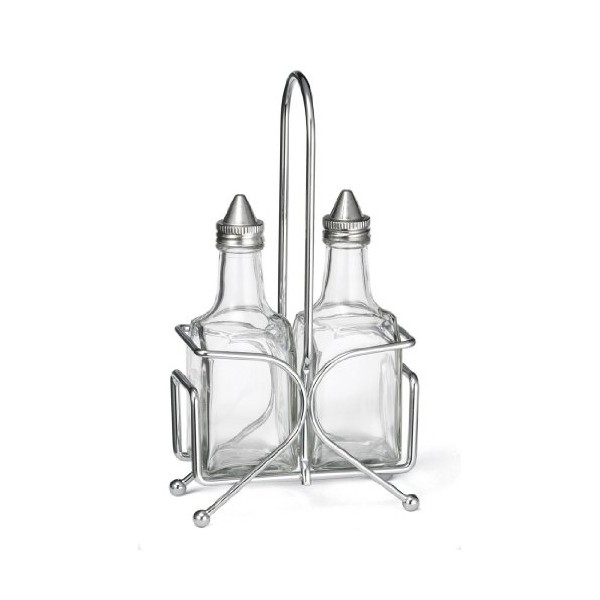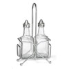 Tablecraft Glass 6 Oz Oil / Vinegar Cruet Set with S/S Tops and Rack