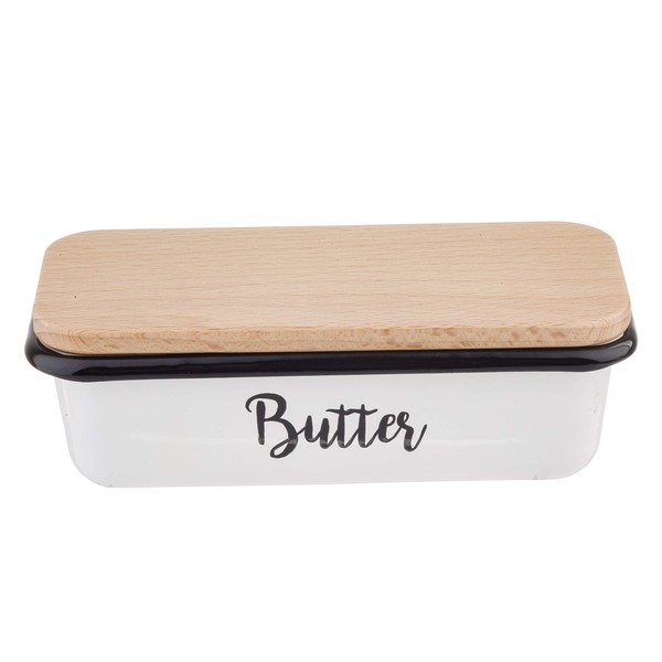 From Farm to table, there's no "butter" way to store your butter than with TableCraft's enamelware collection butter dish. The break resistant enamel dish and beech wood lid preserve your contents while adding farmhouse charm to your counter or tabletop.