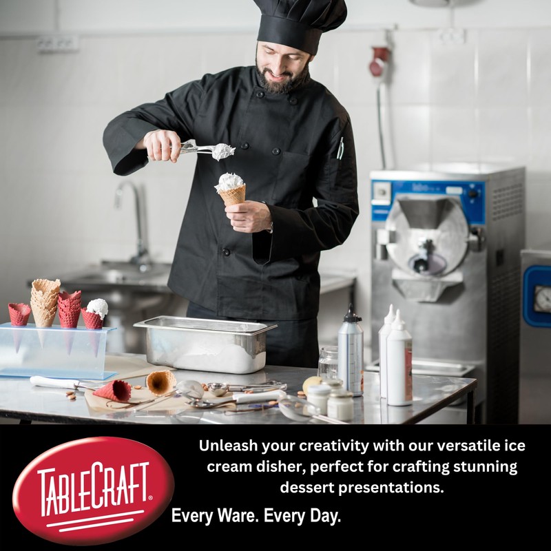 - Versatile Scoop for Various Uses; Beyond ice cream, this Tablecraft scooper is also perfect for crafting beautifully shaped cookies, dough, and melon balls. Its deep bowl allows for easy portioning and scooping, making it a must-have for bakers, dessert enthusiasts, and anyone who enjoys creating culinary delights