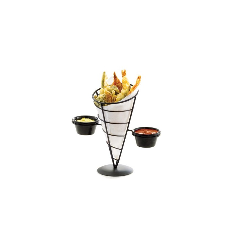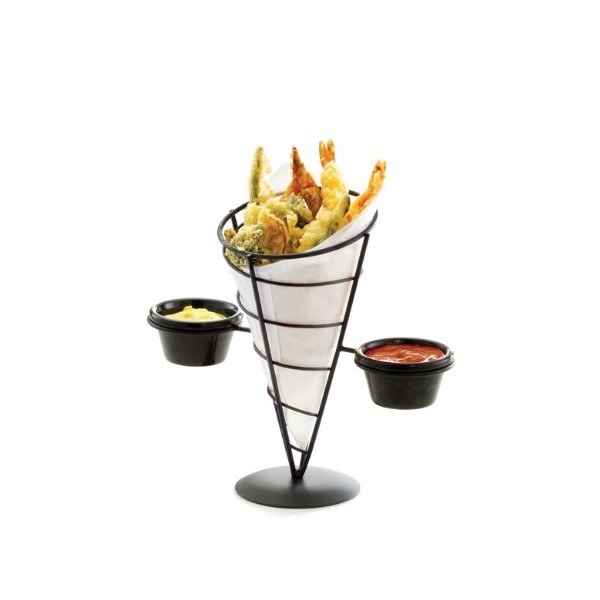 Tablecraft Vertigo Collection Appetizer Cone with Two Ramekins, Black, 9-Inch by 5-Inch