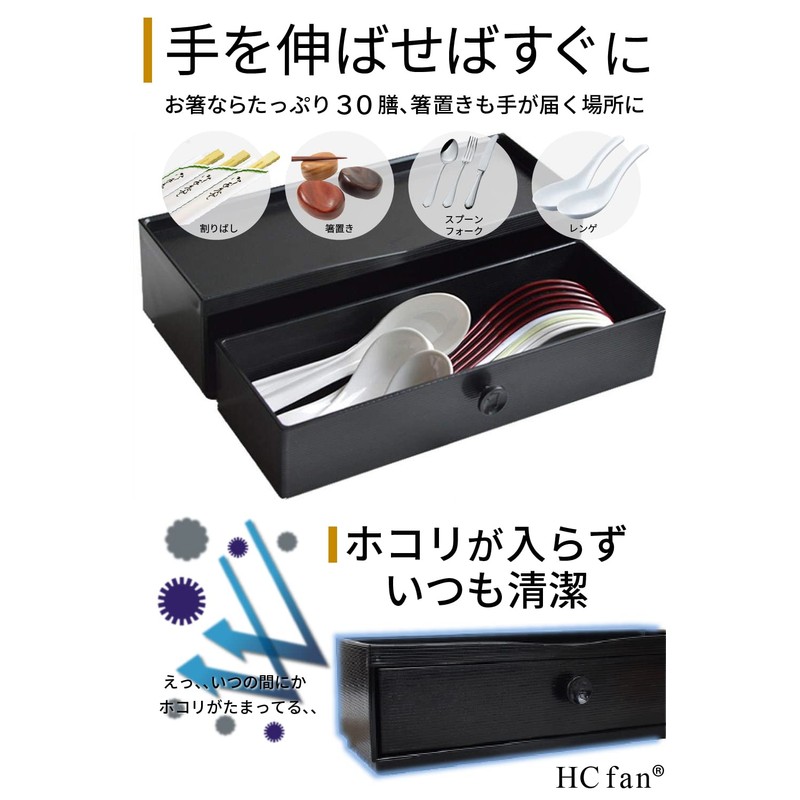 - (Color/Material) Matte black that goes well with any location; Uses ABS resin that combines light weight and durability. With a chopstick holder, you will find dust and oil stains that you don't notice on your precious chopsticks. Put the drawer type chopstick case in place to use clean chopsticks comfortably. The bottom of the chopstick case has ventilation holes for moisture consideration, so you can clean the excess water after washing it to wick away moisture and dry. Make washing your busy daily dishes a little easier. ・
