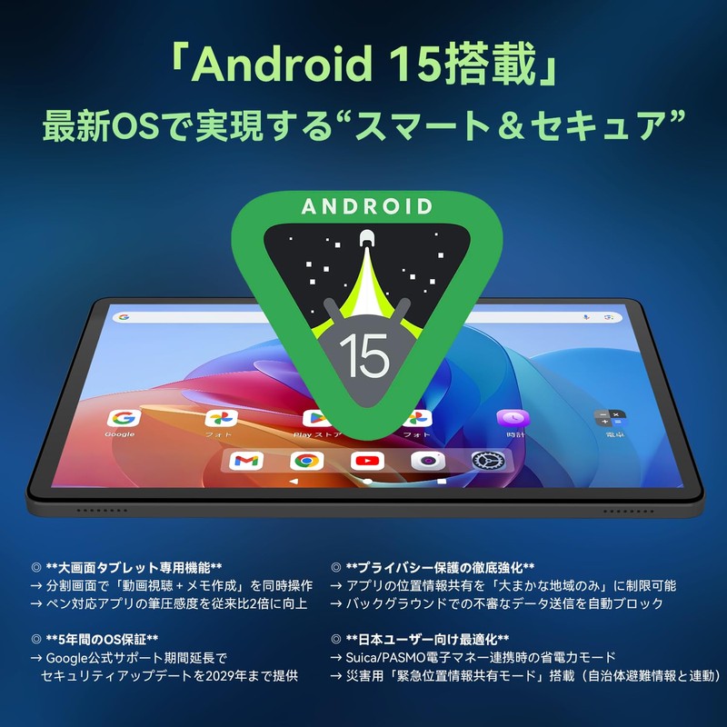 - Smart and Safe Digital Life with Android 15: Equipped with the latest Android 15, Google Play Protect 24-hour security monitoring ensures safety when using bank apps and PayPay. Upto 20% increase app startup speed and multitasking smoothly. With a long-term operating system warranty up to 2030, we have a sustainable design that can be used with 5 years peace of mind. Positioning access can be programmed to "Allow" for enhanced privacy. AI optimizes battery life for up to 2 hours with peace of mind in emergencies. In addition, it comes with a Japanese TalkBack and voice control function as standard, and an accessibility design that is easy to use for visually impaired and elderly