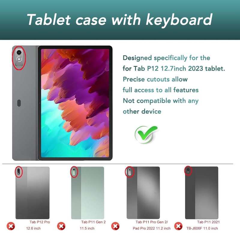 - APPLICABLE : Tablet case with keyboard is designed specifically for Tab P12 12.7inch 2023 tablet, the cutouts allow full access to all functions, not compatible with any other device.