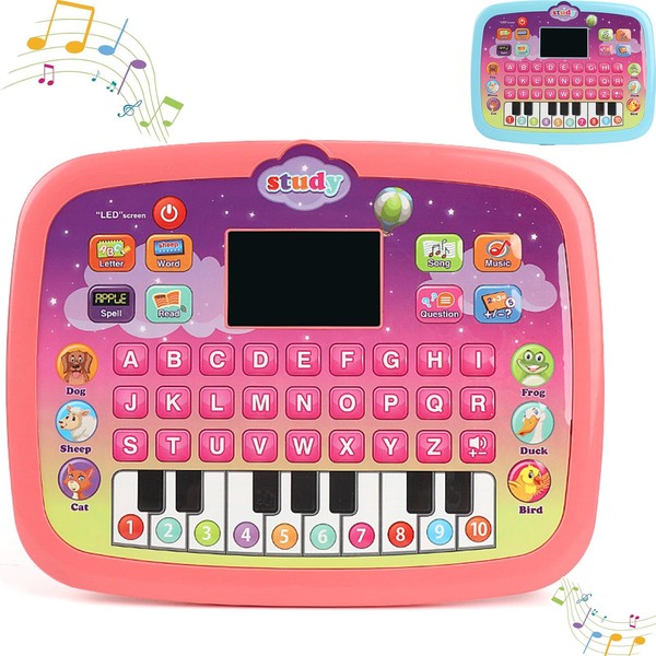 Tablet Computadora de Juguete, Computadora Portátil con Visualización LED para Enseñar Alfabeto, Números, Palabras, Música, Matemáticas, Juguetes Educativo de Aprendizaje Interactivos (Rosa)