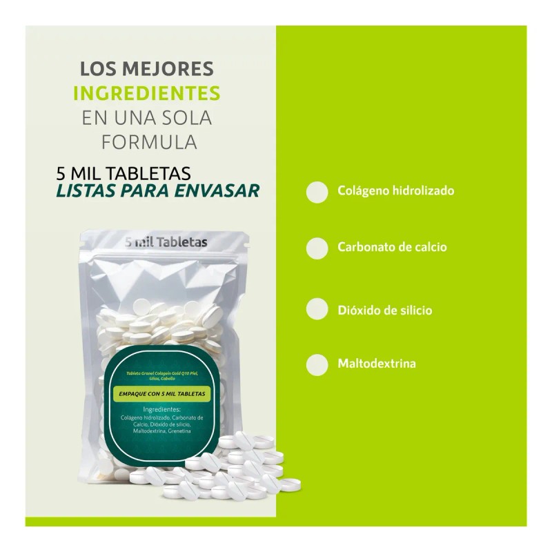 Tabletas granel colágeno coenzima Q10 sin sabor