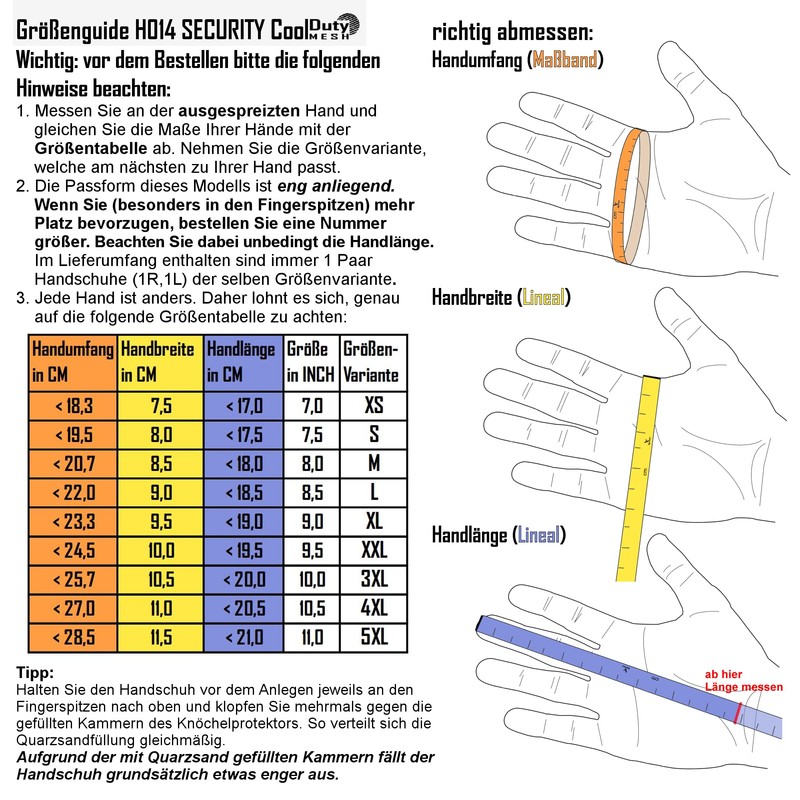 - Security quartz gloves, breathable: CoolDuty mesh: ventilated quartz sand gloves, improved air exchange and moisture formation, especially in warm temperatures, thus counteracting sweat formation, gloves with quartz sand-filled chambers over the ankle and fingers, considerably reinforced ankle protection thanks to quartz sand compared to standard gloves