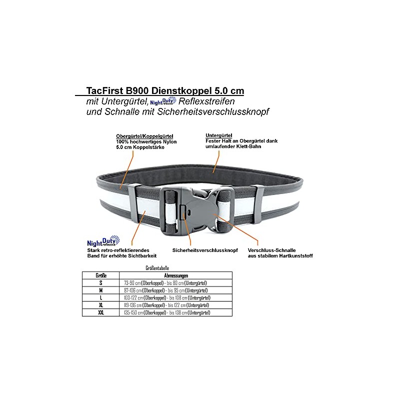 TacFirst Service Belt Black Police Security BW Emergency Service with Velcro Lower Belt, Nightduty Reflective