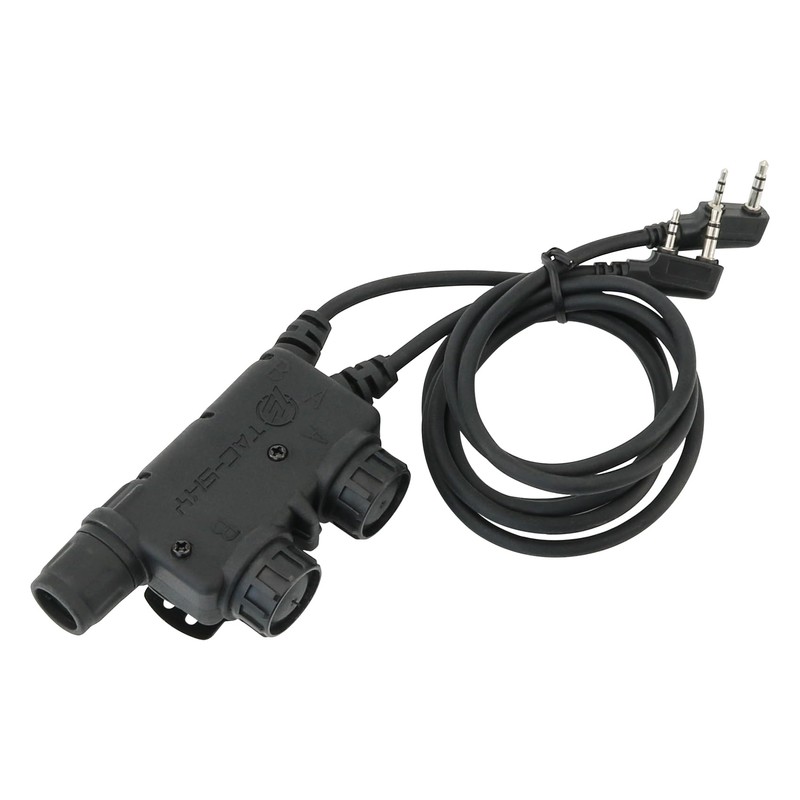 TACGZGJSM V2 U94 Tactical Headsets Dual PTT Push-to-Talk 2pin Kplug Walkie Talkie Headset Connector Cable for UV5R,UV17R etc. (Black)