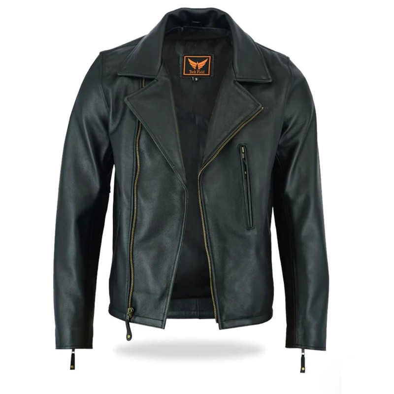 TackField Men's Premium Motorcycle Cowhide Leather Jacket - Heavy Duty Biker Club Style Jacket (US, Alpha, Small, Regular, Regular, Black)