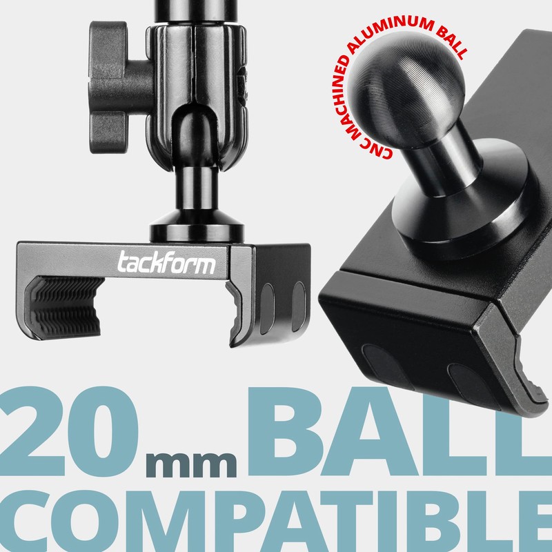 - COMPATIBILITY - This is a 20 Series product for 20mm ball and socket systems. Please note that Tackform manufactures products for multiple sized ball and socket systems. The most common are 20mm, 25.4mm and 26mm. These systems are not interchangeable. If you are unsure of your ball size, please contact our support team.