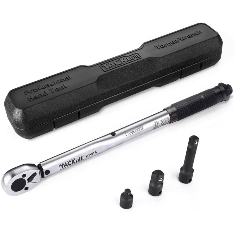 TACKLIFE 3/8-Inch Drive Click Torque Wrench with adapters, 10-80 ft.-lb. / 13.6-108.5 Nm.-HTW1A