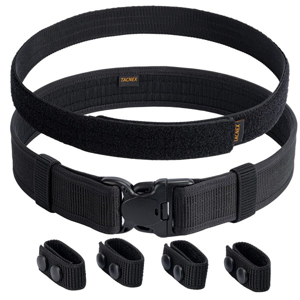 TACNEX Duty Belt w/Hook Lining 4 Keepers Police Law Enforcement Correctional Officer Security Black Nylon Outer Inner Belt XL