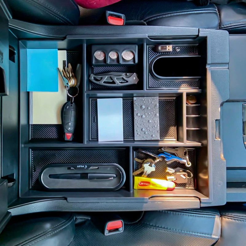 - [Organizer Your Drive Life nd More Fun]: This tundra console organizer match fits the inside shape of the center console exactly to make a tight fit and not rattle. Removable coin box makes your coins orderly.