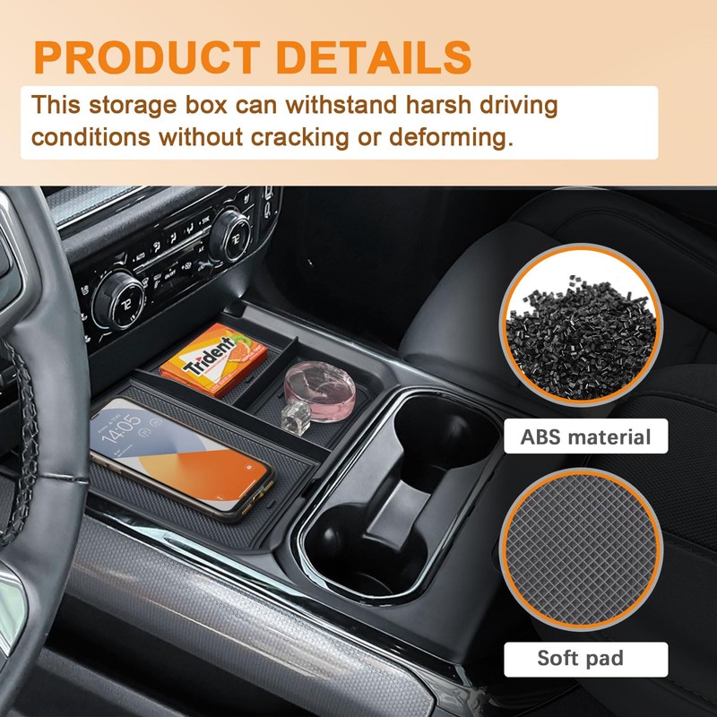 - Built to Last: Made from premium ABS plastic, this organizer withstands rough driving conditions without cracking or warping. Anti-slip rubber pads keep items in place and reduce noise from sliding or rattling.