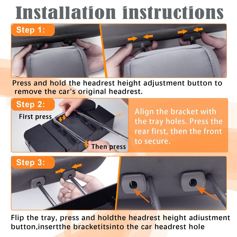 • Convenient and stable installation: “1-minute non-destructive installation”, thickened metal support rods, sturdy and non-shaking. (Package includes: console tray*1, rubber pads*4, mounting rod*1) Please check the installation instructions before installation, save more time and effort! You need to first remove the headrest from the original vehicle seat before installing the Jump Seat Headrest Tray.