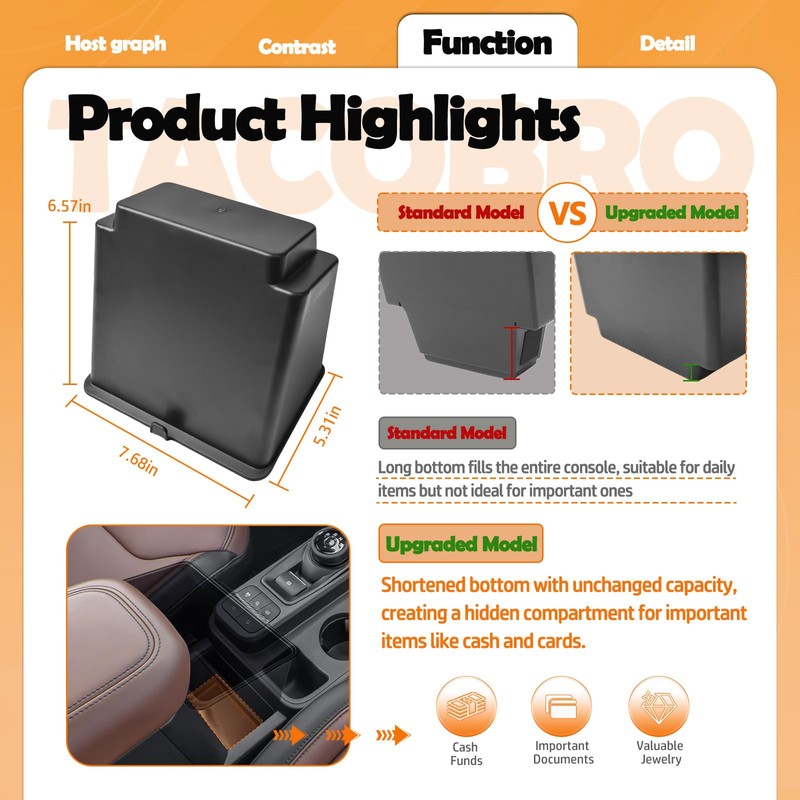 - Practical Design: keep the interior clean and tidy, the height of this storage box is higher, which can better store some longer items, and will not affect the opening and closing of the armrest cover. It is very convenient to pick up and place items, without opening the armrest box