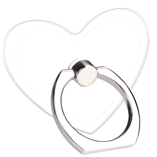 TACOMEGE Transparent Clear Phone Holder Ring Grips, Finger Ring Stand for Cell Phone Tablet (Heart-Clear)