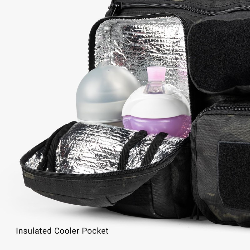 - Practical Exterior Features – Thermal lined cooler pocket keeps snacks and drinks cool, and the magnetic wipes pocket provides fast access to all the wipes you need for a diaper change or snack time cleanup. Additional pockets and MOLLE webbing provide more than enough storage space for necessities.