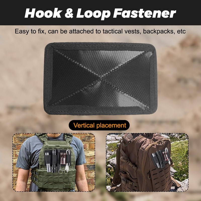 • 【Hook and Loop Fastening】This elastic EDC organiser panel is designed with a hook and loop fastener on the back, and you can attach it to your tactical backpack or tactical vest.