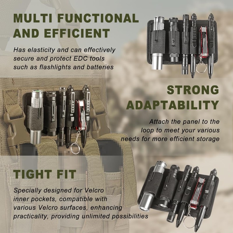 • 【Multi-functional EDC Pouch】This tactical bag insert is your ideal outdoor EDC companion, suitable for securing torches, tools and batteries, tactical pens, cables and other items.