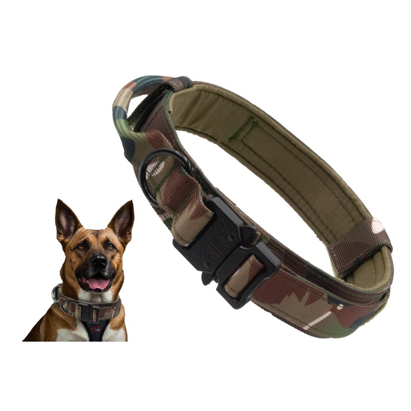 - [ DOUBLE SECURITY DESIGN ]: The military training dog collar features an integrated design that makes it simple to put on and remove. The metal clasp allows for convinent. With both a Velcro strap and a metal buckle, this collar provides and ensuring it stays firmly in place.