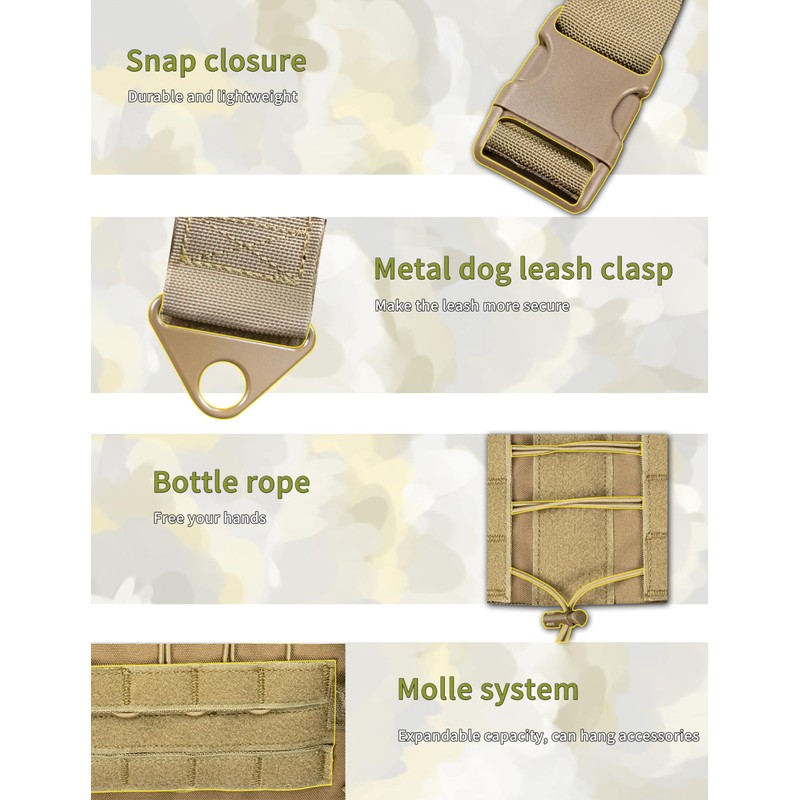 - 🎒【Elastic Back Straps】 Flexible bungee cords on the back allow secure attachment of dog gear, water bottles, or small pouches during hikes. Adjustable tension adapts to loads up to 2 lbs without restricting movement, quick-access storage.